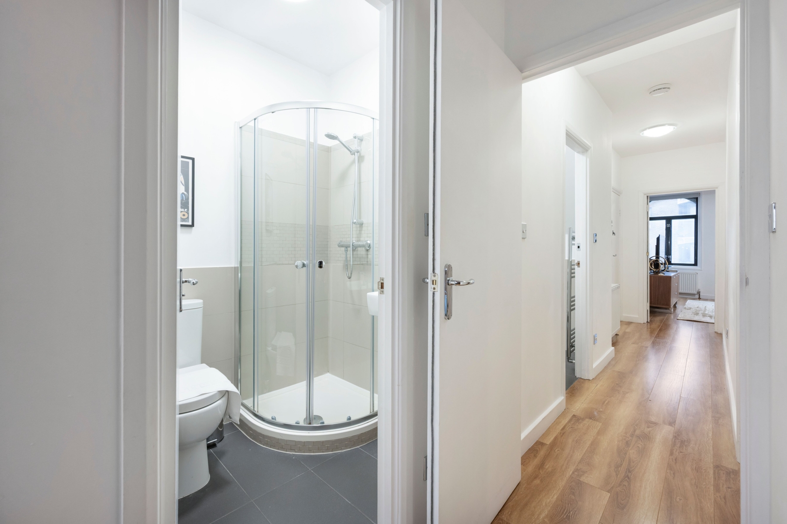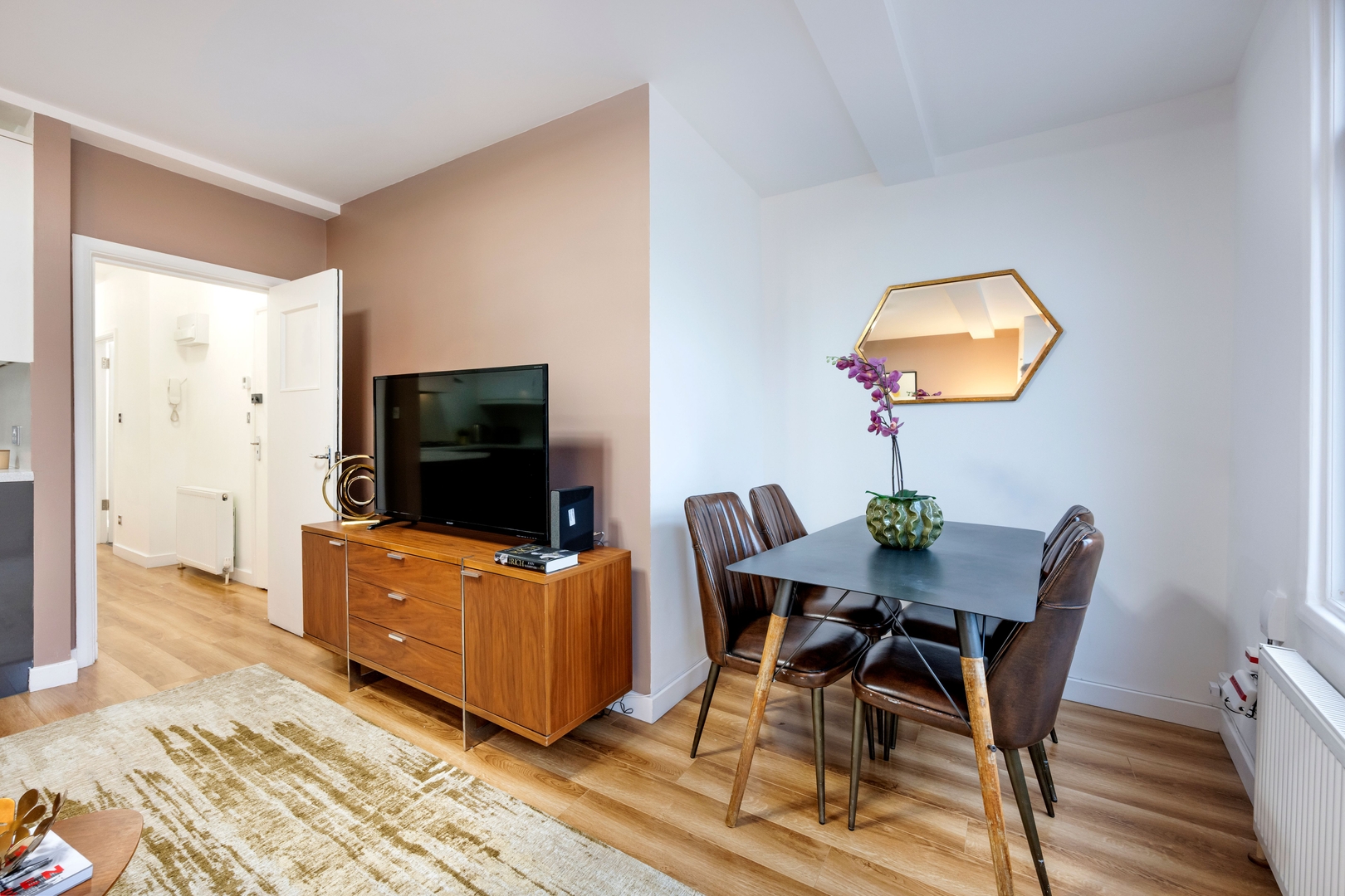 This cosy two-bedroom, two-bathroom flat offers a comfortable and practical stay with all the essentials you need, without pretending to be a brand-new or high-luxury apartment. The décor is simple and functional, with warm wooden floors, clean lines, and a relaxed atmosphere throughout.